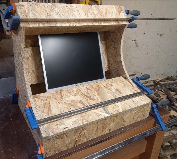 Il ne reste plus qu'a faire un "enjoliveur" autour de l'écran pour cacher le fond de la caisse.
