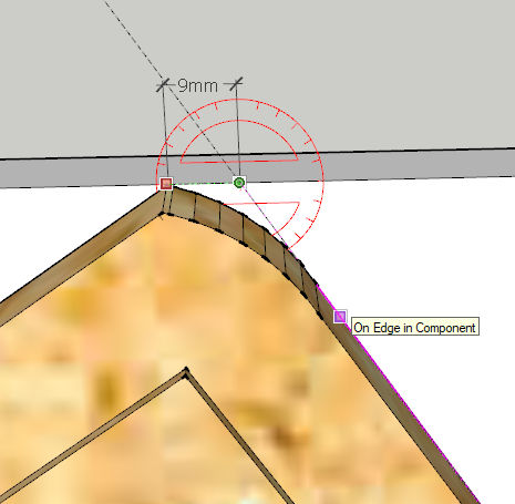 On décale de 10mm sur la droite pour tracer la deuxième droite. Elle doit recouper l'arc de cercle.