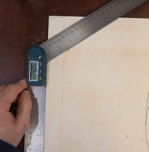 Sur la face arrière, à 500 mm de hauteur prendre un point et tracer une droite avec un angle de 124 degrés, cette droite va arriver sur le haut de la à partir