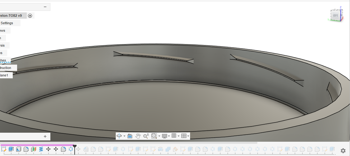 On viens ensuite créer les trous de sortie de 5,5mm sur le pourtour. Cette fois-ci une esquisse sur la face interne, puis a nouveau l'outil "Pattern" pour faire 28 trous sur le tour du couvercle.