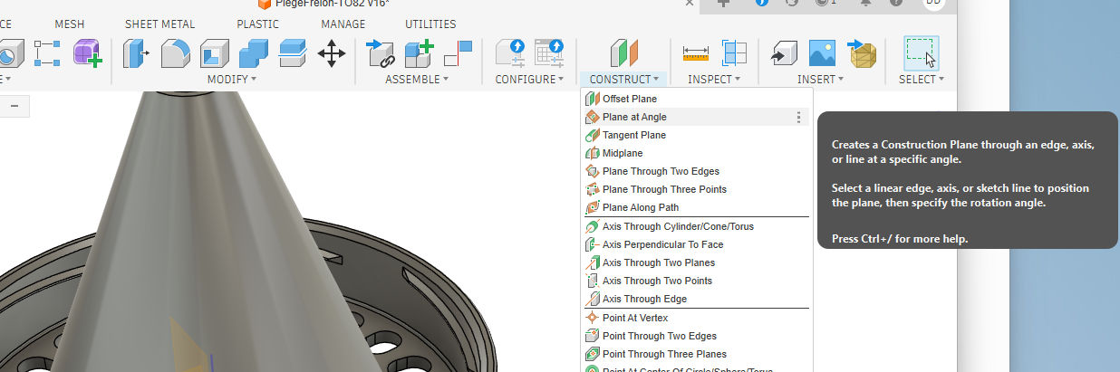Il faut maintenant créer un plan de construction incliné, cela va nous permettre de dessiner une esquisse sur un plan incliné du cône.