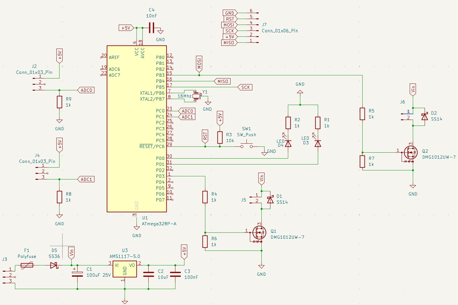 - L'utilisation d'un Atmega328p et son quartz a 16Mhz programmé avec le code Arduino